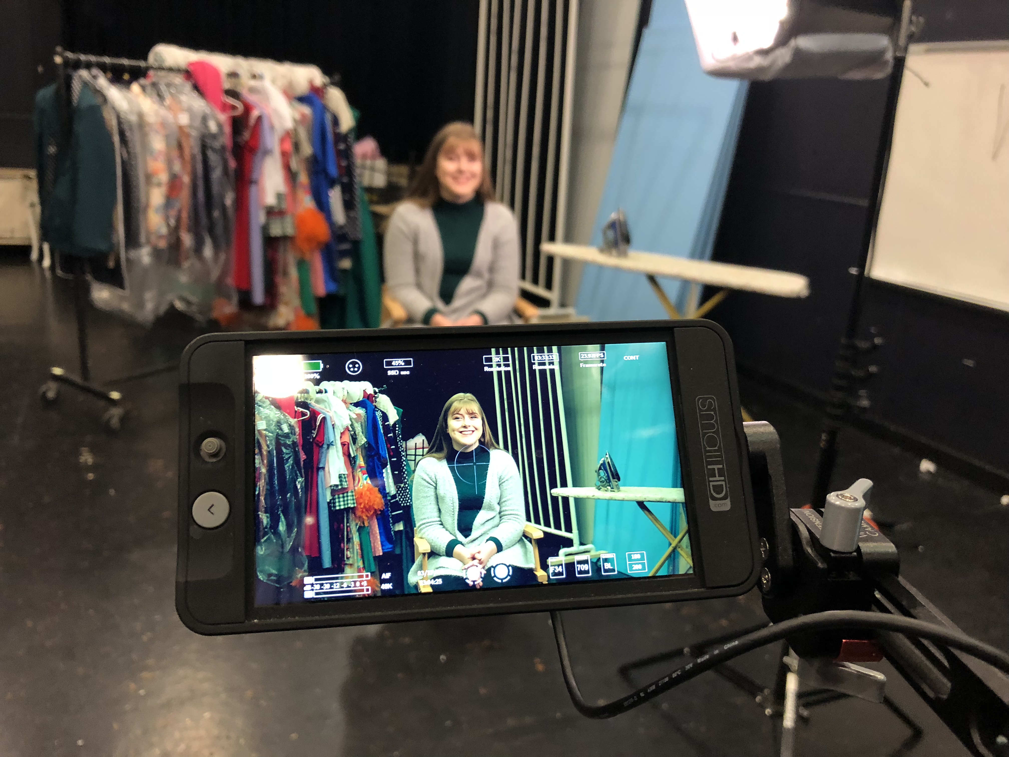 Student Rachel Lum, who works in the costume shop, appreciates being able to reference rehearsal clips while not actually being in rehearsal.